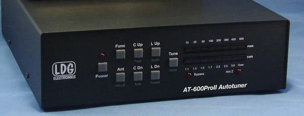 LDG AT-600 Pro II umożliwia błyskawiczne automatyczne dostrojenie anten w zakresie od 1.8MHz do 54MHz. Maksymalna moc wejściowa wynosi 600W dla CW/SBB, 300W dla emisji cyfrowych i 250 dla zakresu 6m.