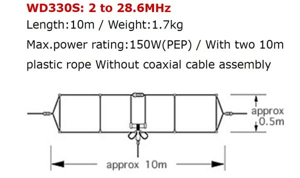 Pokrywa amatorskie pasma KF: 80m/40m/30m/20m/17m/10m bez konieczności stosowania tunera antenowego.