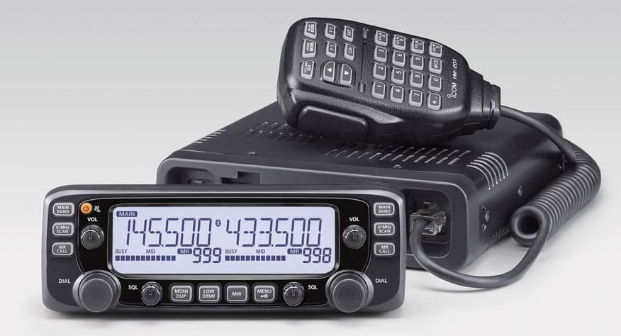 Przewoźno-bazowy transceiver na pasma 2m/70cm o dużej mocy (50W). Jednym przyciskiem można łatwo przełączyć pomiędzy pasmami na którym nadajemy.