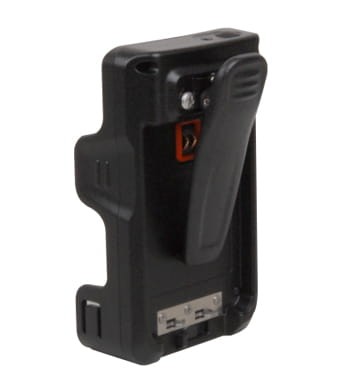 Kabura z klipsem do paska Hytera CH04L01 do radiotelefonów X1p/X1e. Umożliwia ona również ładowanie radiotelefonu z drugiego akumulatora BL1809 wpiętego do kabury.