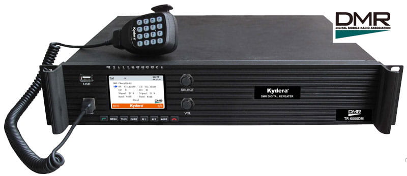 Profesjonalny przemiennik DMR Kydera TR-6000DM, umożliwiający łączność w cyfrowym standardzie DMR oraz analogowym trybie FM na paśmie VHF lub UHF.