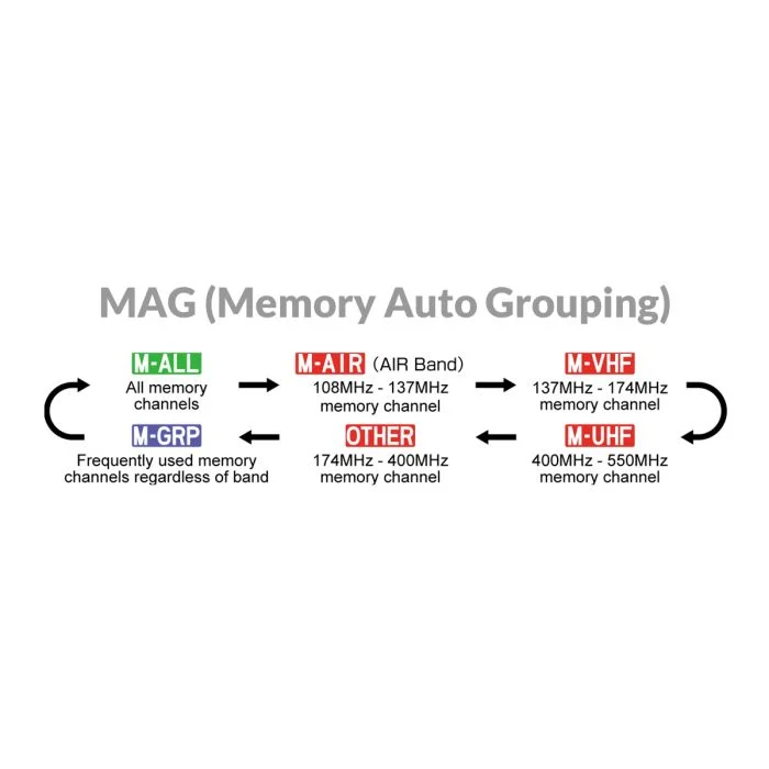 - Zaawansowany system pamięci PMG i MAG dla intuicyjnego dostępu do częstotliwości