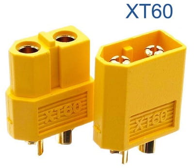Para wysokoprądowych konektorów (wtyk i gniazdo) typu XT60. Specjalna budowa konektora pozwala pracować na dużych prądach oraz zabezpiecza użytkownika przed odwrotnym wpięciem wtyczki.